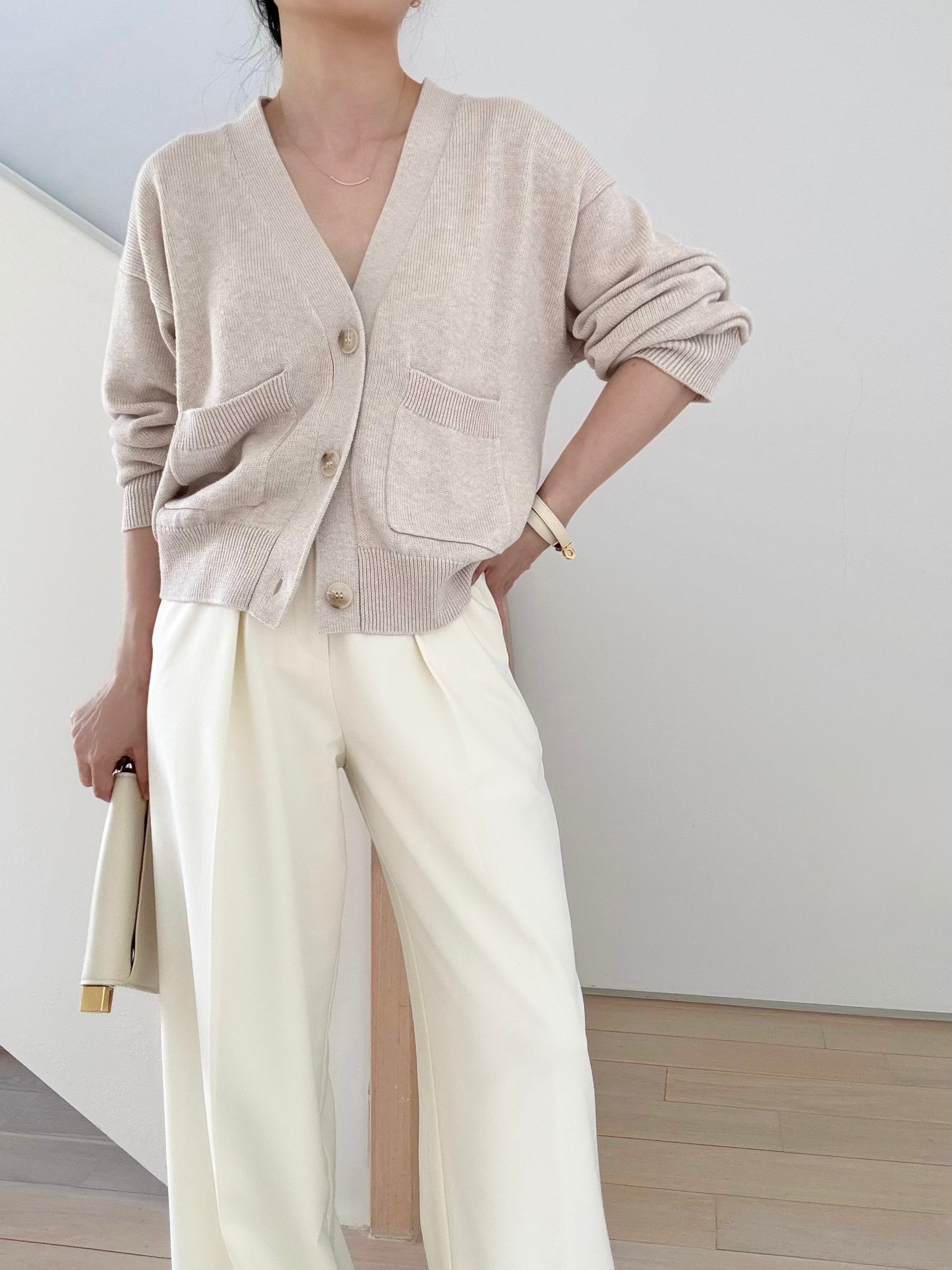This relaxed yet cosy cardigan embodies a perfected refined ease. Knitted from the finest Supima cotton and cashmere in the dreamiest Pana cotta and Soft Oat shade, this cardigan exudes a soft structure that is polished and slouchy in all the right ways. Pair it with it's matching tank and tailored trousers for a tonal look that is minimalism at its best.