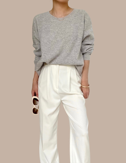 Sold Out -06 Finely Ribbed Cashmere Sweater - Cloud Grey