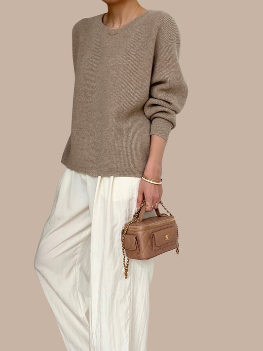 Sold Out -06 Finely Ribbed Cashmere Sweater - Walnut