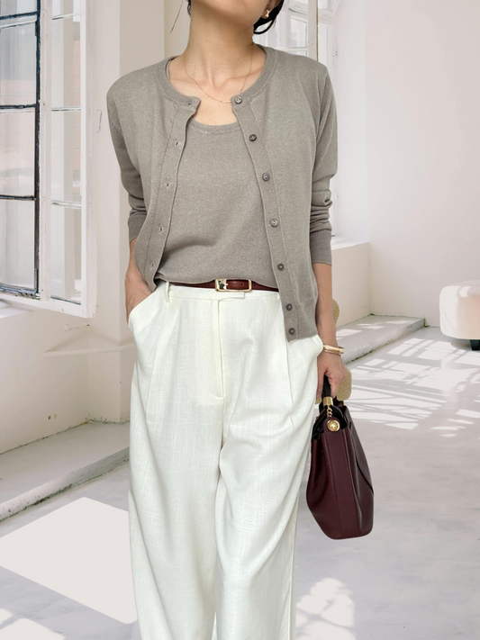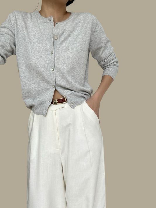 Sold Out - Cotton Cashmere Cardigan- Pebble