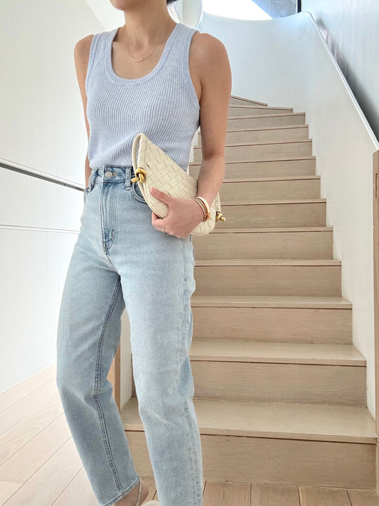 Sold Out-Cotton Cashmere Ribbed Tank - Powder Blue