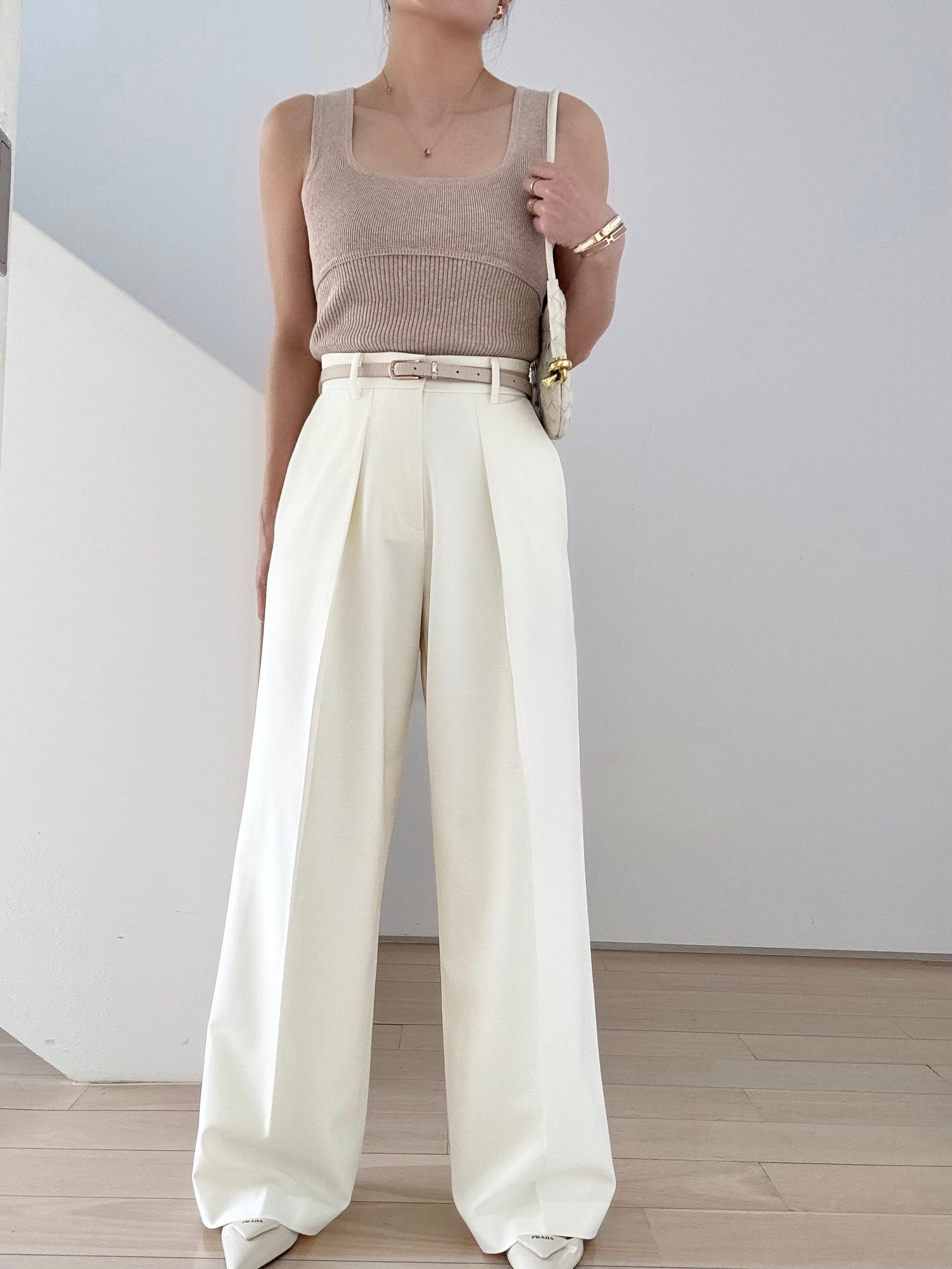 Day to Night Tailored Trousers ( Belt included) - Vanilla